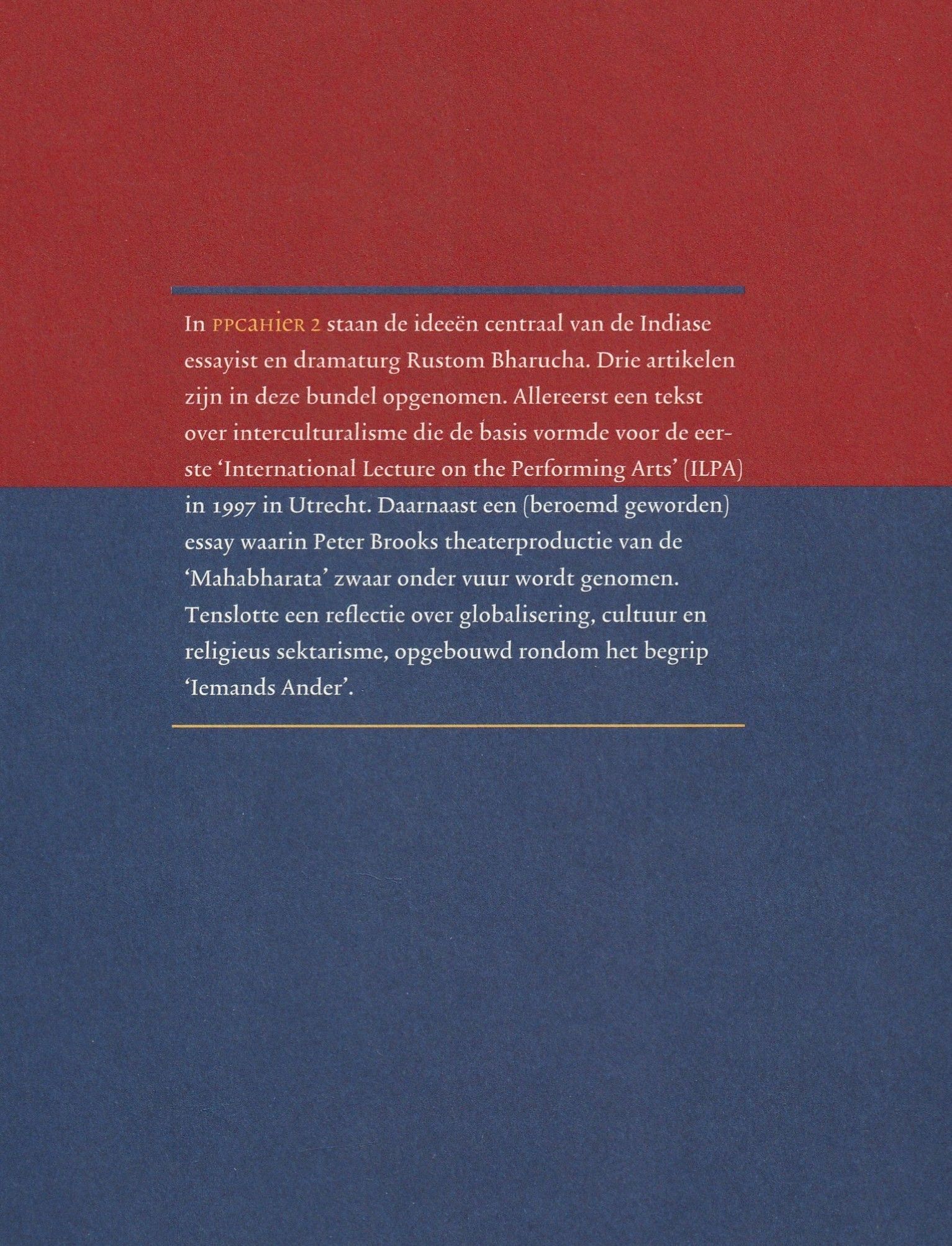Mahabharata door regisseur Peter Brook. Dit essay kun je hieronder lezen in de Nederlandse vertaling. Bharucha verzamelde nog meer kritische reflecties op het werk van Westerse theatermakers in zijn bundel